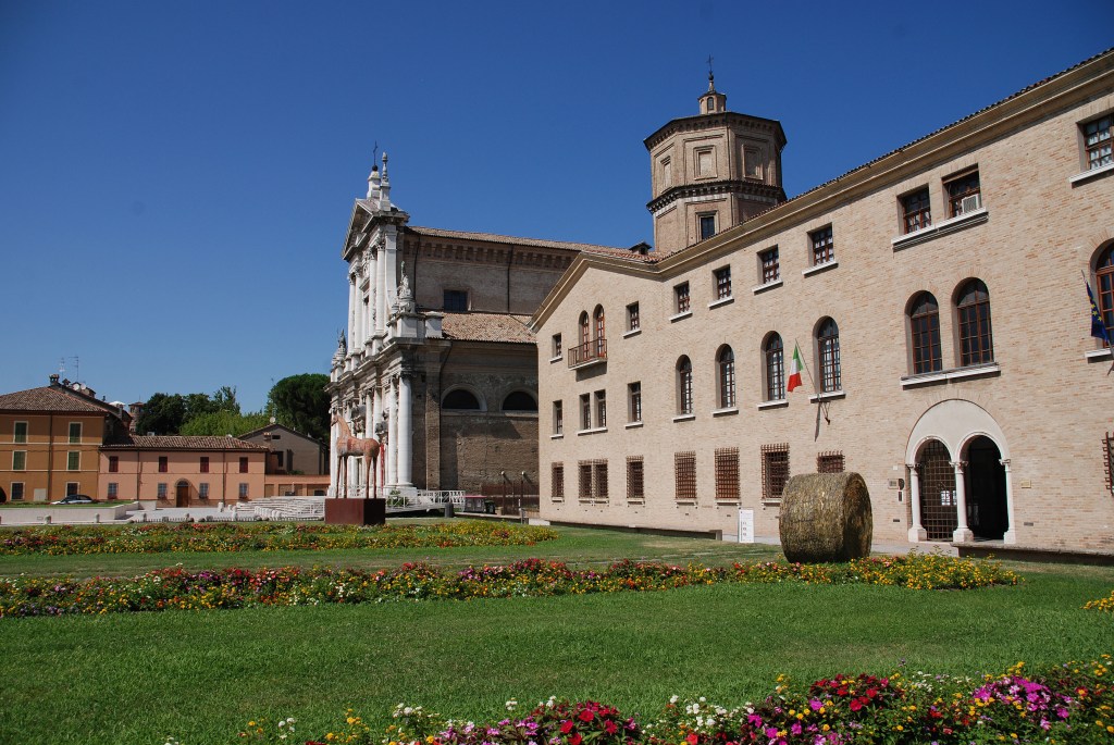 Returning to the station by a different route, we saw the ‘Palazzo di Teodorico’, the façade of a 6th or 7th century brick building. The original function of the building has not yet been established. We also passed the church of S Maria in Porto, where sculptures from the modern art gallery next door struck an incongruous note.