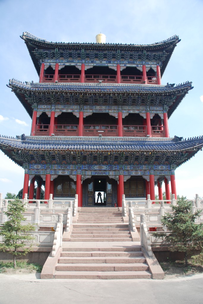 We had a cold drink on a terrace with a great view of the city, where a PA system was (bizarrely) playing Una Paloma Blanca and then visited a pagoda which also had a good view of the city, and another smaller pagoda which marks the spot where the head of a serpent is trapped. The serpent’s tail is trapped by a pagoda on an opposite hill – if the buildings collapse, the serpent will be freed and Urumqi will be destroyed by flood.