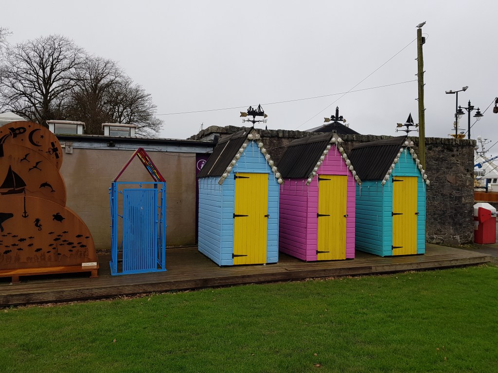I have been wanting to visit Dumfries and Galloway ever since I read Five Red Herrings by Dorothy L Sayers, so I was already aware that Kircudbright was famous as an artists’ town. The excellent Kircudbright Galleries, in the former town hall is an excellent place to start. The ground gallery is devoted to the story of the development of the town and surrounding area as an artistic colony from the mid-18th century to the present. Artists whose works can be seen include John Faed, E A Hornel, Jessie M King, Charles Oppenheimer, S J Peploe, Robert Sivell and Phyllis Bone. The first floor is a temporary exhibition space. When we visited there was an exhibition on the subject of Utopia – which included some very different interpretations of the theme from the Brexit-angst of EU-topia to matchbox paintings of Norway.