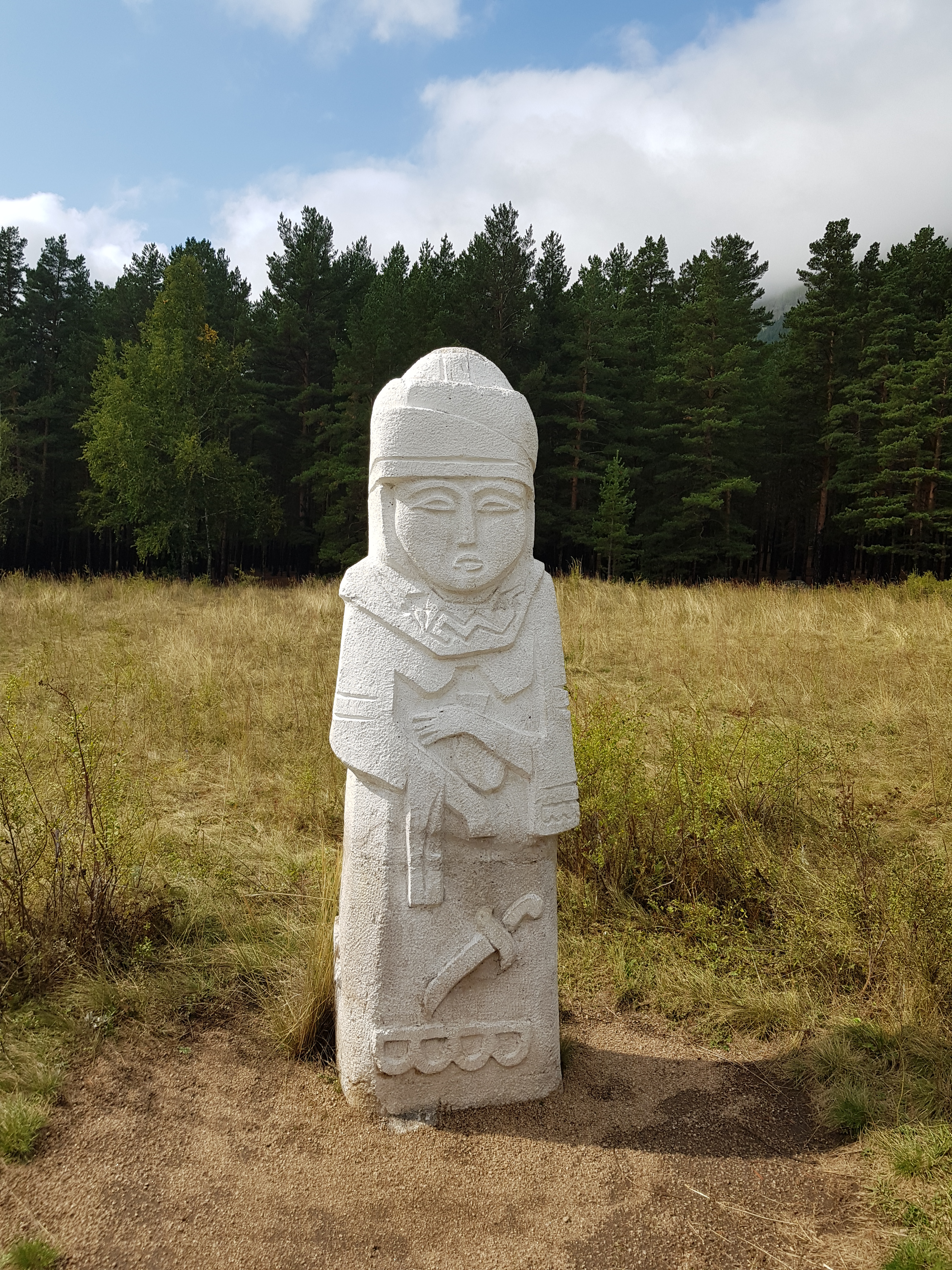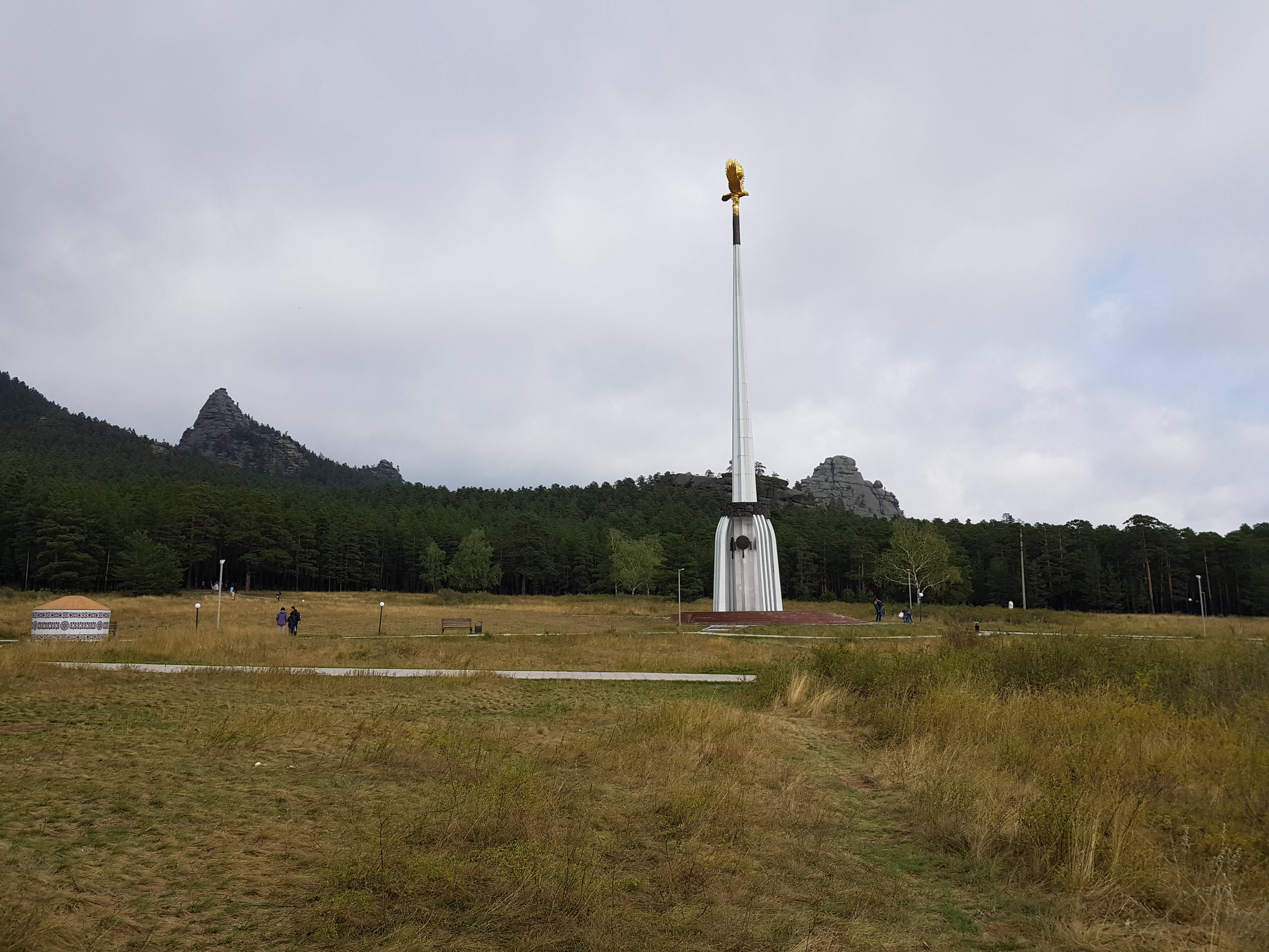 We then drove a little further to Ablai Khan’s clearing. This has been identified as the site where Ablai Khan, an 18th-century Kazakh leader, set up camp. Today it is a tourist mecca, with modern stone balbals, little souvenir stalls shaped like miniature half-yurts and opportunities to be photographed in Kazakh dress holding a golden eagle. We walked to the rock formation called Ablai Khan’s throne and dutifully walked around it anticlockwise seven times to make a wish.