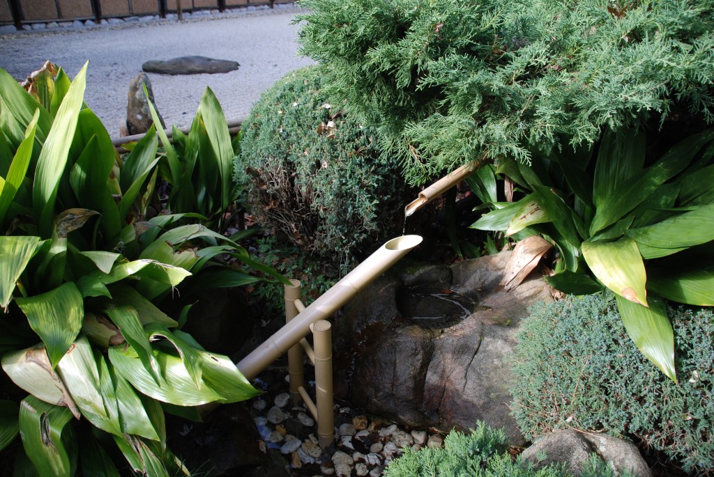 The garden blends two classic styles: the ‘senzui’ or lake and mountain garden and the ‘kare senzui’ or dry garden where rocks and sand evoke the presence of water. Look out for the bamboo deer-scarer. This is a bamboo tube which gradually fills with water until it is horizontal and then tips up and empties itself, causing one end to hit a rock, making a noise.