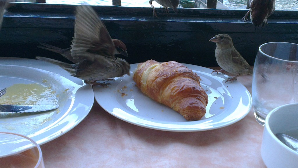 The Italian Lakes in summer are a far cry from a Northumbrian winter, but I was reminded of this quotation from Bede’s History of the English Church and People at breakfast on my first morning in Bellagio, as a sparrow flew through the dining hall. Where the bird was going turned out to be no mystery though. Breakfast was being served on the balcony, and the sparrows were very happy to help themselves to croissant crumbs on our table and even (more worryingly) the remains of a scrambled egg.
